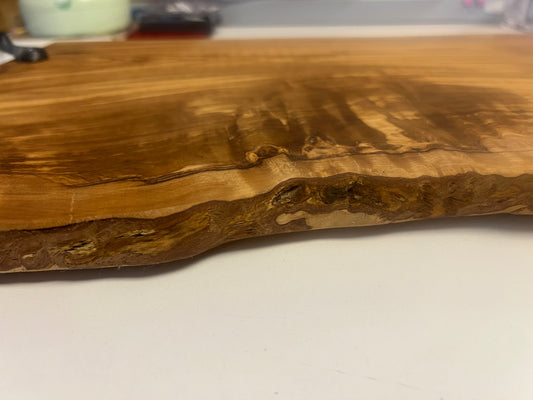 18" Octopus Handle Rustic Handmade Olive Wood Bark Edge Charcuterie Board