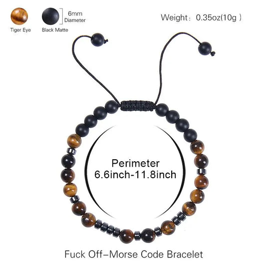 Morse Code Tiger's Eye Frosted Stone Beaded Stretch Bracelet - Best Bitches