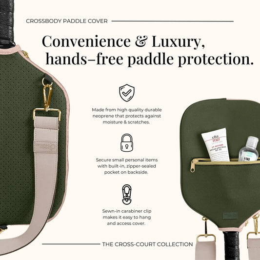 Pickleball Paddle Cover w/ Strap, Storage & Clip- Green
