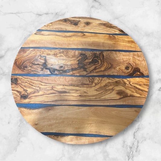 Olive Wood & Blue Epoxy Resin Lazy Susan, Charcuterie, Meat & Cheese Board 15-1/2"