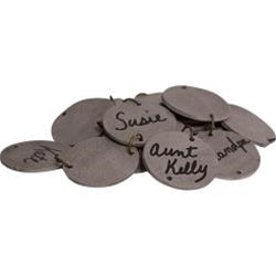Add even more birthdays to your Birthday calendar with these Replacement Tags! Package of round blank wooden tags with holes on the top and bottom, and a jump ring for adding to a hook or to another tag. 48 pieces.