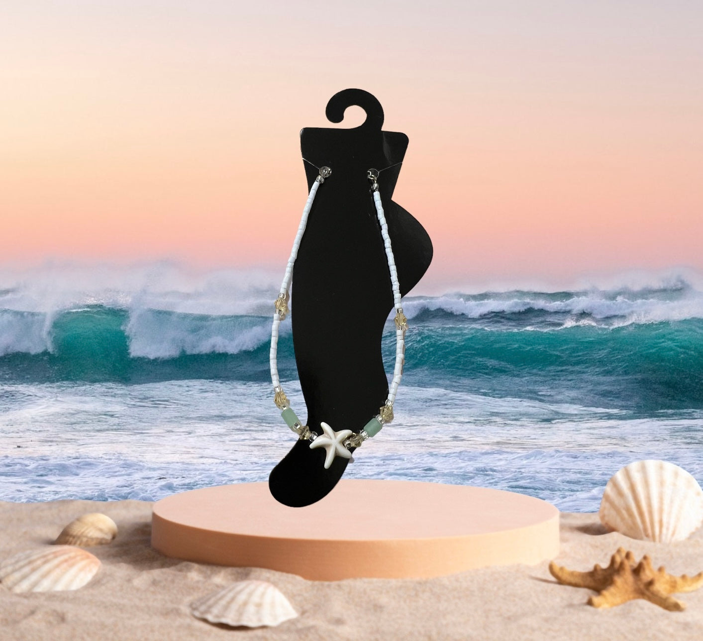 Anklet Starfish w/Seaglass & Glass, Homemade
