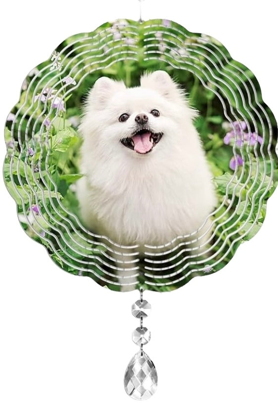 Our spinners are aluminum and printed on BOTH sides. The aluminum allows for a beautiful flow even in the light wind. There is a small hole at the bottom to add a decoration of your choice for that added pop but they still look amazing without. Teardrop Crystall in included in this model
