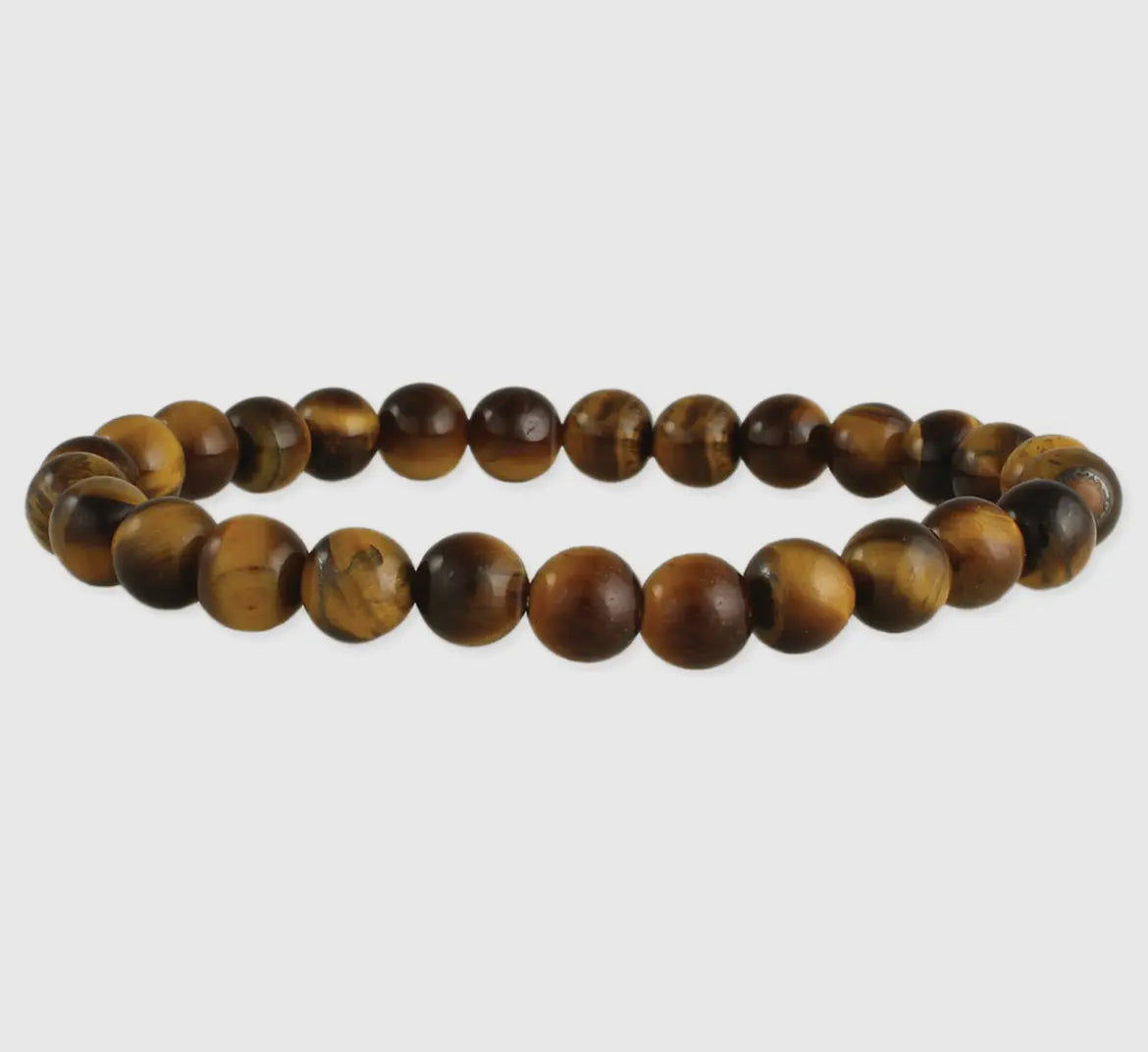Look fierce with this handmade genuine stone men's bracelet. Natural tiger eye beads strung on stretch cord. Classy and cool! Genuine tiger eye round beads. 8mm beads. Elastic cord for comfortable fit.