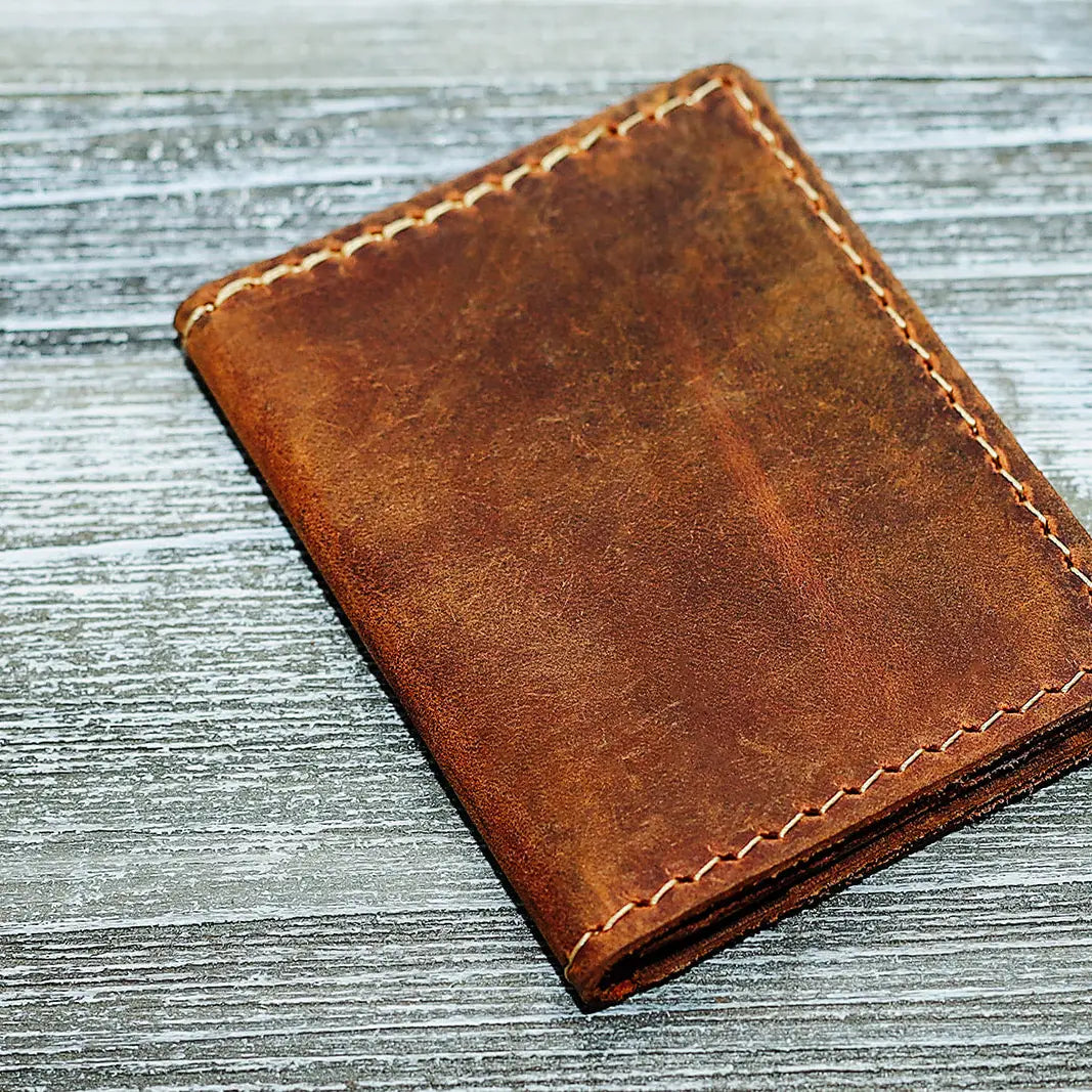 Hand Made Leather Bifold Wallet Rustic Brown