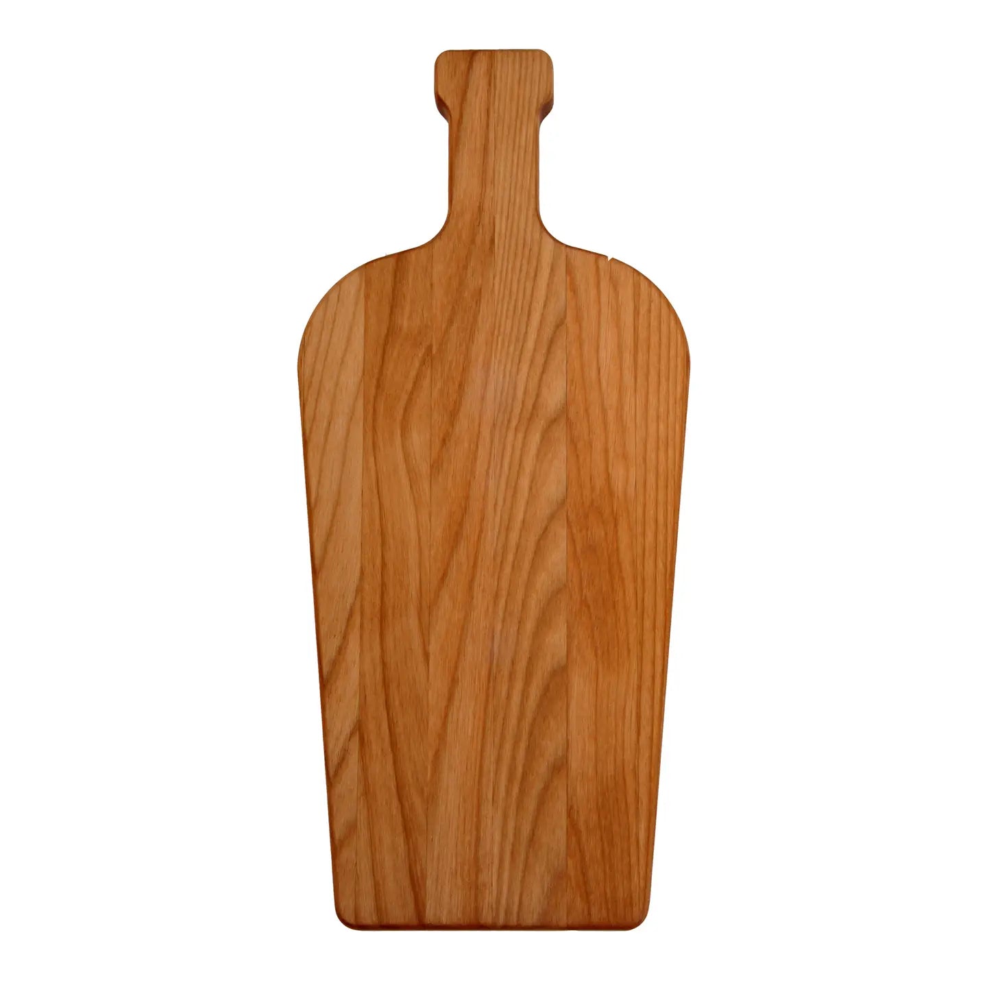 Our whimsical Wine Bottle shaped serving board is a fun way to serve your favorite cheeses and snacks. This board is available plain or engraved for the perfect gift. Large Wine Bottle Board is 15" x 7" x .75" and hand oiled with our 100% pure food grade mineral oil.