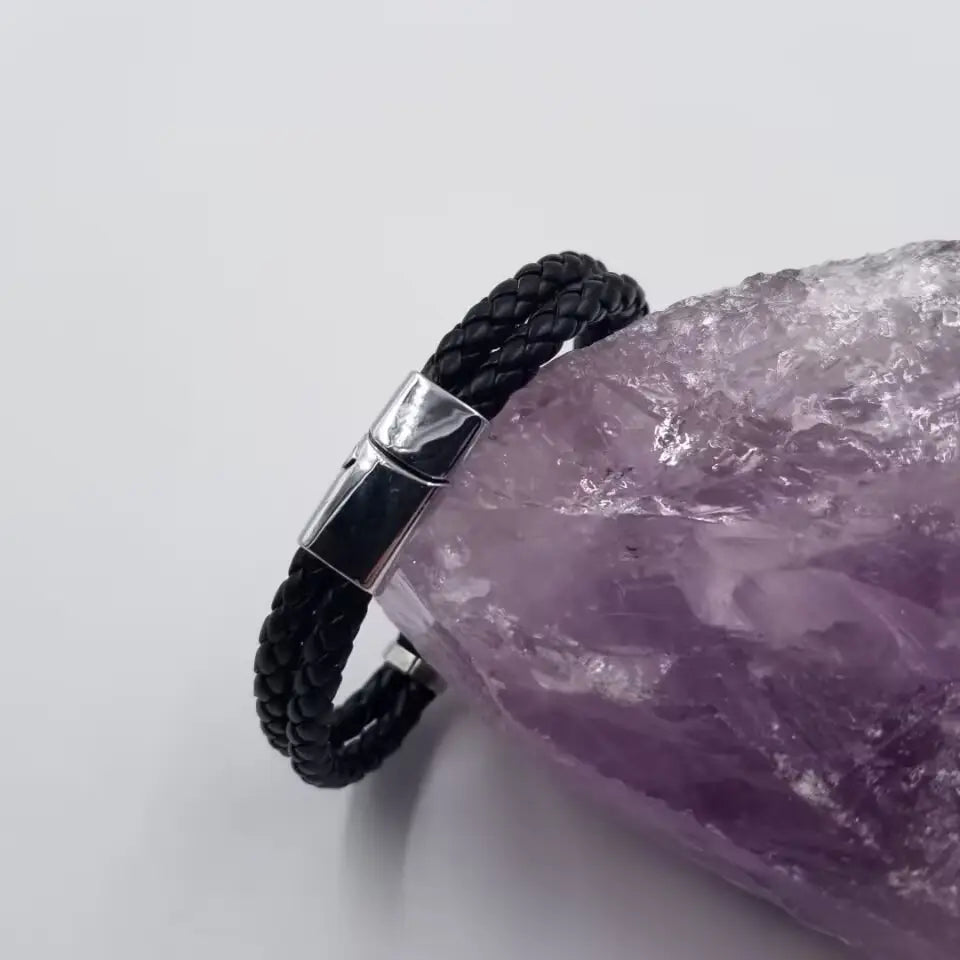 Leather Bracelet for Men, Father's Day Gift. Handmade Braided Layered cross bracelet With Magnetic snap Leather and stainless steel materials