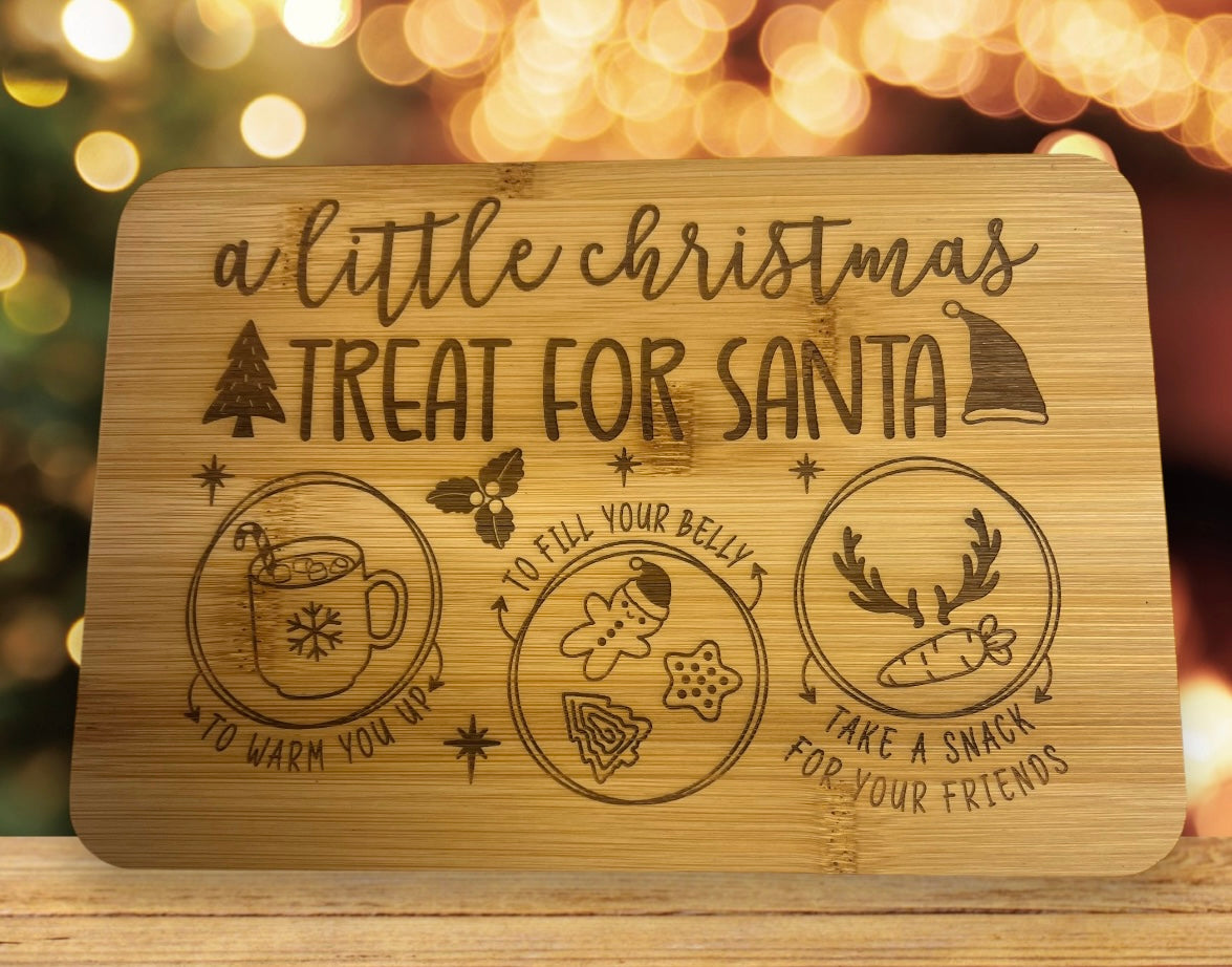 Santa Treat Tray, Bamboo Wood with Laser Print, Santa Plate