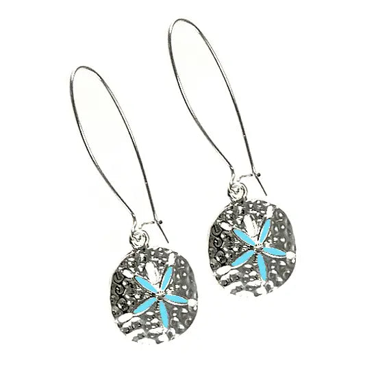 Turquoise Sand Dollar Hammered French Hook Metal Dangle Earrings, Silver Sand Dollar Hammered French Hook Earrings FR3001 Antique Silver Sand Dollar Hammered Metal Earrings FR3002 All Silver Sand Dollar Hammered Metal Earrings FR4917 Turquoise Sand Dollar Pearl Hammered Metal Earrings FR4919 Black Sand Dollar Pearl Hammered Metal Earrings Drop Length : 2" Earring Closure : Long French Hook Zinc, Hook: Brass Lead & Nickel & Cadmium Free